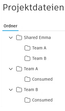 Außerdem werden neue Ordner Geteilt und Einbezogen für die beiden Teams im Werkzeug Dateien in Docs angezeigt: