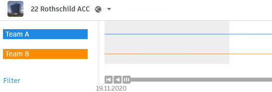 Die beiden Teams werden in der Projektzeitleiste in Design Collaboration angezeigt: