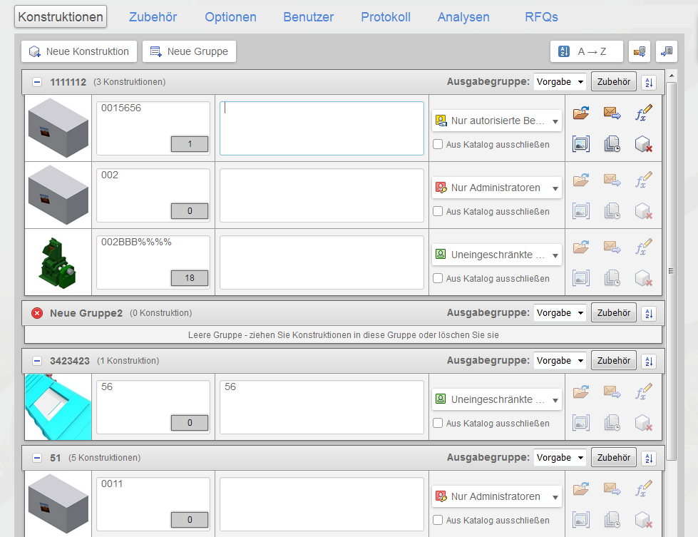 - Zeigen Sie die Konstruktion oder das Zubehör an und konfigurieren Sie sie bzw. es vor dem Hinzufügen zum Katalog, wo sie bzw. es für Kunden verfügbar ist.