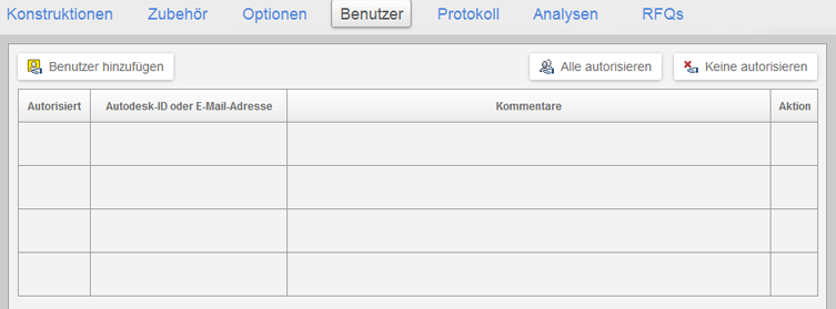 Fügen Sie die Informationen der Endbenutzer hinzu, denen Sie den Zugriff auf Ihren Konstruktionskatalog gewähren möchten.