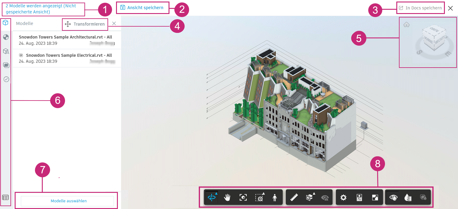 Weitere Informationen finden Sie unter Werkzeugkasten des Modell-Viewers.