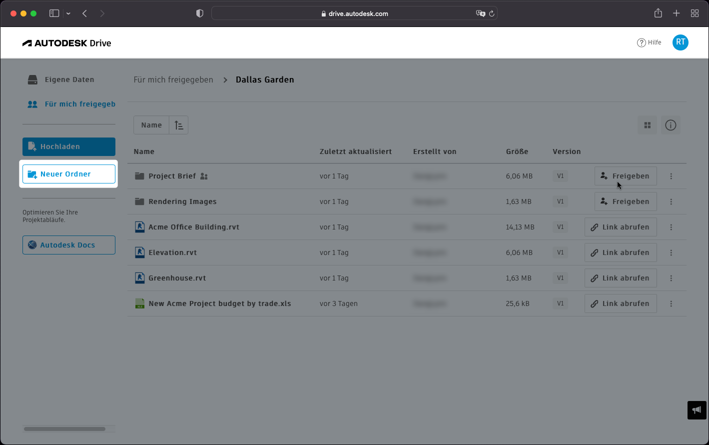 - Wechseln Sie in Drive zu dem Ordner, in dem Sie einen neuen Ordner erstellen möchten.