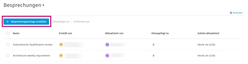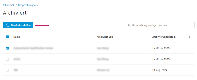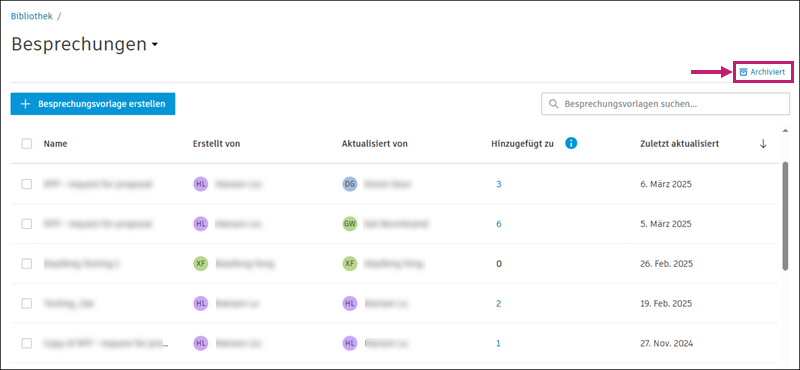 Sie können Besprechungsvorlagen archivieren und wiederherstellen.