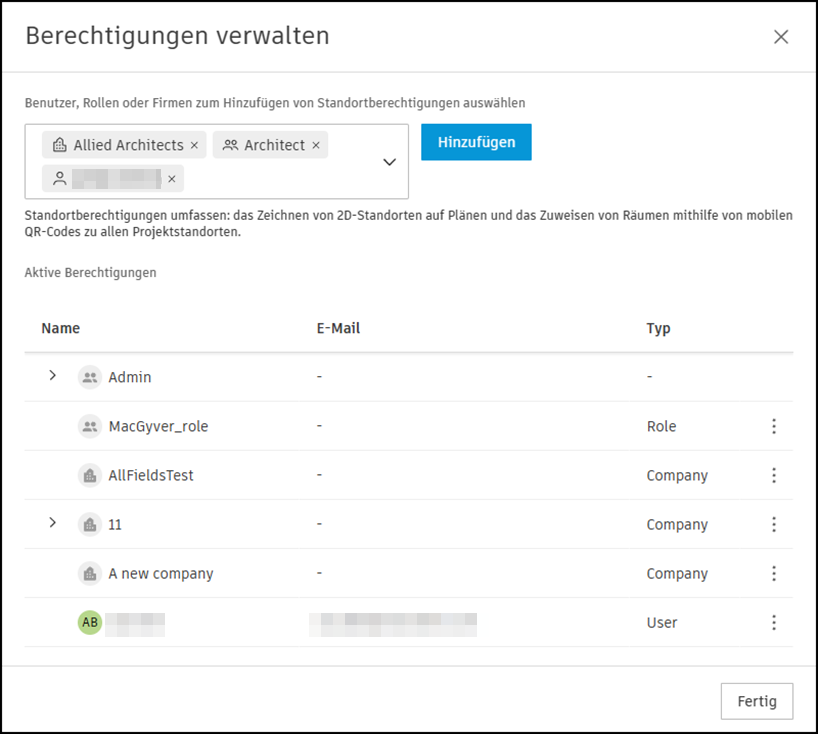 Fügen Sie Benutzer, Rollen oder Firmen hinzu.