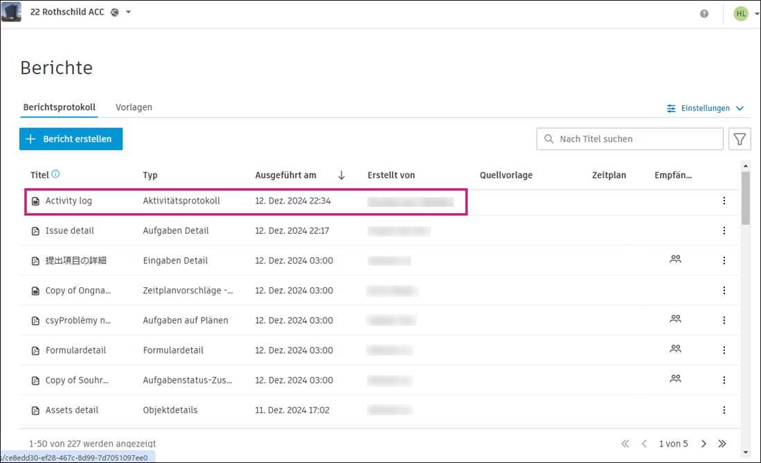 Sie können auch im Berichtsprotokoll auf den Bericht zugreifen.
