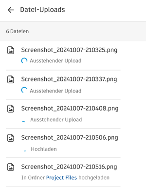 | Ausstehender Upload | Die Datei befindet sich in der Warteschlange zum Hochladen. |