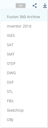 Beim Herunterladen eines Fusion-Entwurfs haben Sie die Möglichkeit, ein Format auszuwählen.