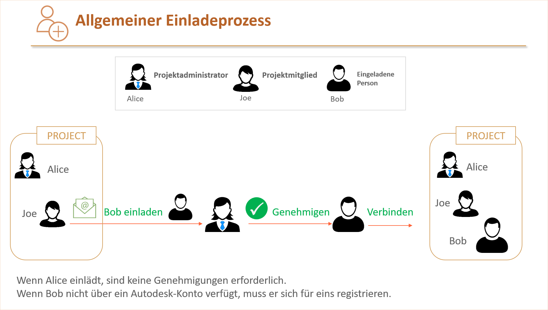 Der Einladeprozess funktioniert folgendermaßen, wenn die Hub- oder Projekteinstellungen nicht geändert werden.