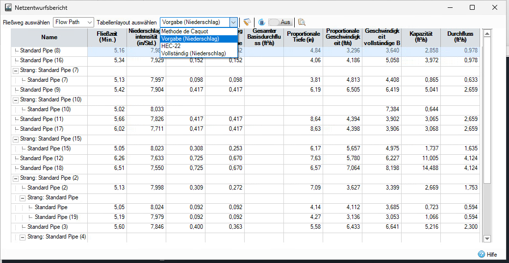 HEC-22 Preliminary Sizing Report format. Review the design results as desired and close the dialog when completed. Additional toolbar options exist to change
