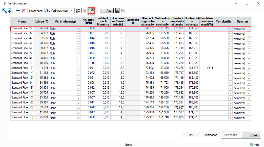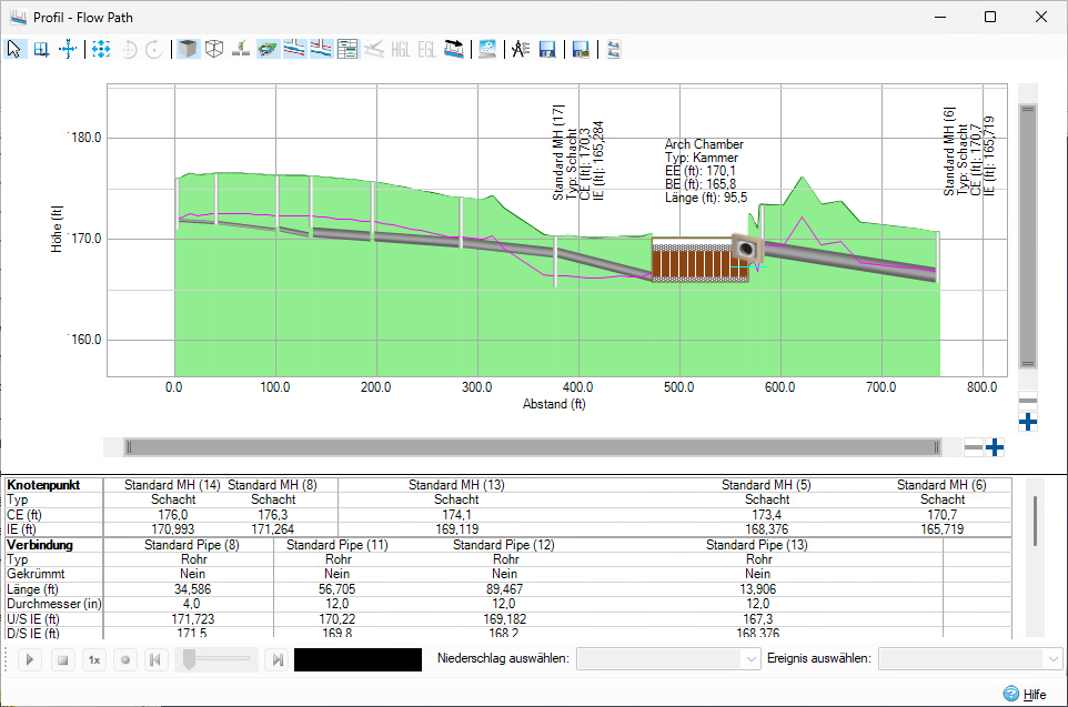 Now that the Arch Chamber SWC has been added and configured, Automatically Size the Pipe Network within the Connections.
