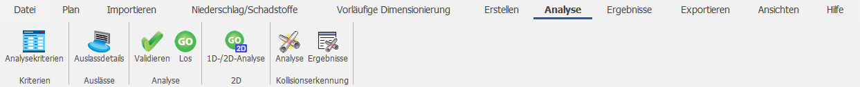 Über die Multifunktionsleiste Analyse können die Analysekriterien angegeben und eine Analyse durchgeführt werden.