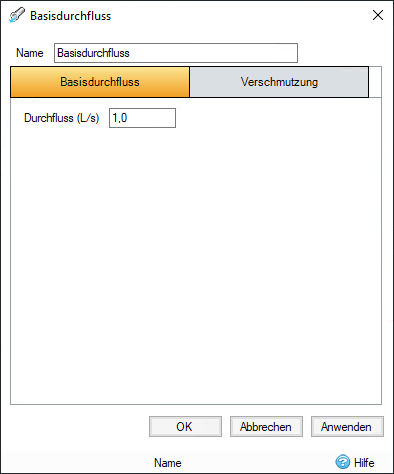 Ein konstanter Volumenstrom kann mit dem Zuflusstyp Basisvolumenstrom auf das System angewendet werden. Ein Basisvolumenstrom ist eine vereinfachte Eingabe-Ganglinie. Der Basisvolumenstromtyp kann in der Multifunktionsleiste Erstellen oder im Werkzeugkasten unter Zuflüsse ausgewählt werden.