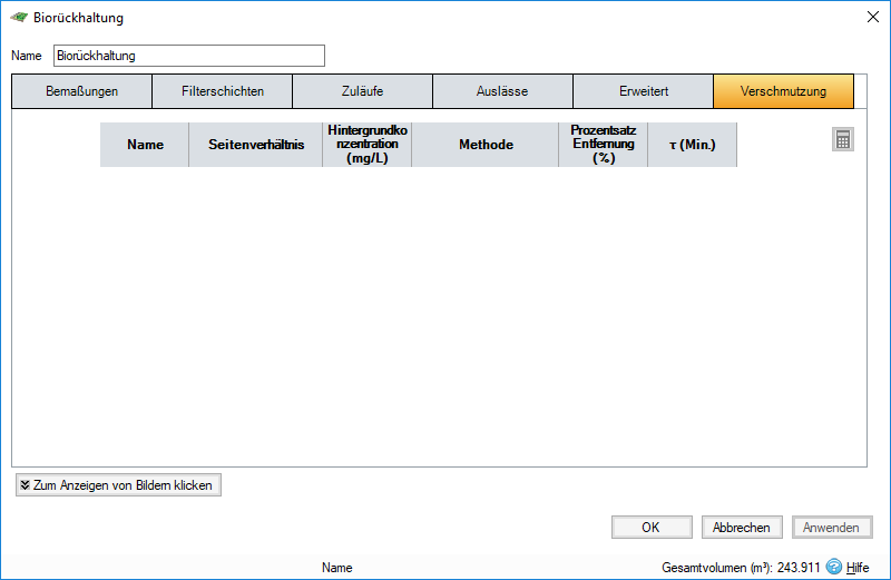 Die Registerkarte Verschmutzung enthält die folgenden Felder: