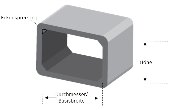 Wie in der Abbildung oben dargestellt, werden durch Hinzufügen einer Eckenspreizung Durchmesser/Basisbreite und Höhe der Verbindung reduziert, was sich auf Kapazität und Fließgeschwindigkeit auswirkt.