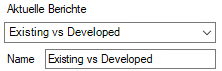 Im Dropdown-Menü kann ein anderer Bericht ausgewählt werden, der die Vergleichsoptionen füllt, wie unten gezeigt. Im Textfeld Name können Sie einen eindeutigen Namen zur Identifizierung des Berichts eingeben, der oben auf jeder Seite des Berichts angezeigt wird.
