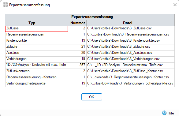 Für jeden exportierten InfoDrainage-Elementtyp wird eine separate Textdatei geschrieben.