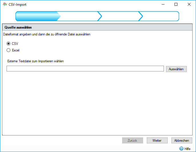 Für CSV-/Textdateien kann das Spaltentrennzeichen angegeben werden.