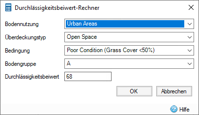 Der Beiwertrechner ermöglicht die Berechnung des Beiwerts für die SCS-Abflussmethode.