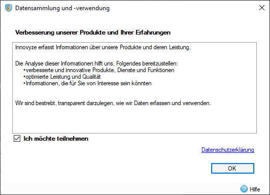 Sie können Ihr Einverständnis jederzeit zurückziehen, indem Sie das Kontrollkästchen Ich möchte teilnehmen deaktivieren.