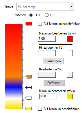 Die folgende Abbildung zeigt die Farbverläufe für Überschwemmung und die entsprechende Legende im Plan.