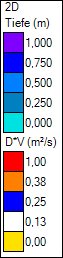 Die Datenlegende zeigt die Farben an, die den Werten in den Ansichten für Oberfläche und Überschwemmung zugeordnet sind. Die Farbschieber für die Ergebnisse von Oberfläche und Überschwemmung werden im Formular Anzeigeeinstellungen festgelegt. Dieses kann jedoch immer nur einzeln angezeigt werden. Die Datenlegenden werden im Plan angezeigt und enthalten Suchtabellen für die Oberflächenfarben.