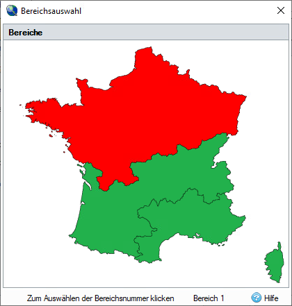 Wählen Sie die Region Frankreichs aus (entsprechend der Unterteilung in Instruction Technique 77), in der sich das Gebiet befindet. Über die Schaltfläche Karte können Sie diese grafisch auswählen, indem Sie den Mauszeiger über die gewünschte Region bewegen und mit der linken Maustaste klicken.