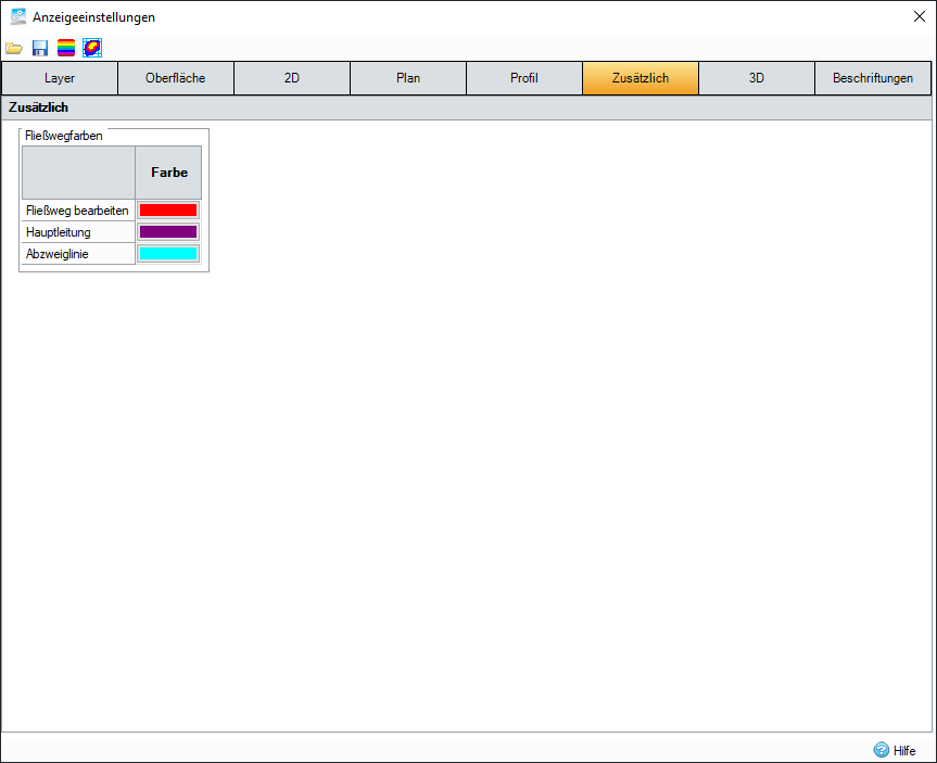 Die Tabelle bestimmt die Anzeigefarben der aufgeführten Elemente für den Fließweg.