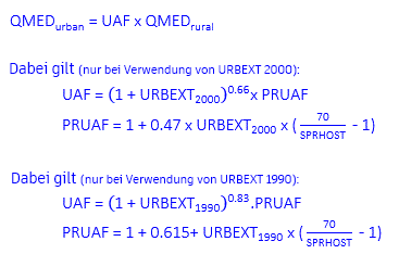 Der Median des jährlichen maximalen Hochwassers im ländlichen Raum wird mit der folgenden Formel berechnet (Ergebnis m³/s):