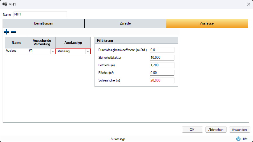 Sohlenhöhe: Sohlenhöhe des Auslasses