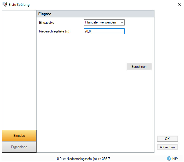 2. Wenn Plandaten verwenden ausgewählt ist, gibt der Benutzer nur einen Wert für die Niederschlagstiefe P ein.