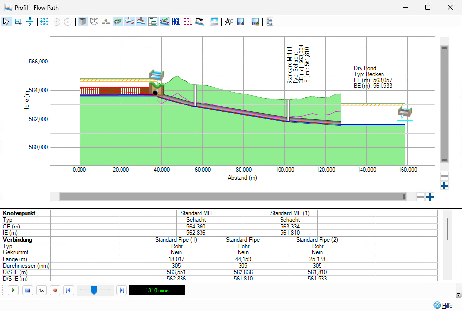 Fließwege können mit Autom. Profil aus dem Kontextmenü der Strukturansicht für Fließwege generiert werden.