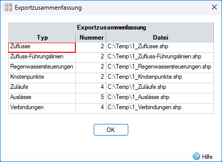 Für jeden exportierten InfoDrainage-Elementtyp wird eine separate ShapeFile-Datei geschrieben.