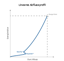 Mit dieser Option wird ein nahezu lineares Abflussprofil generiert, das dem hydraulischen Verhalten einer Drosselscheibe ähnelt, jedoch mit viel größeren Abständen für ein geringeres Verstopfungsrisiko. |