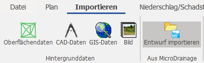 MicroDrainage-Dateien können in InfoDrainage importiert werden, indem Sie auf die Schaltfläche Entwurf importieren klicken.