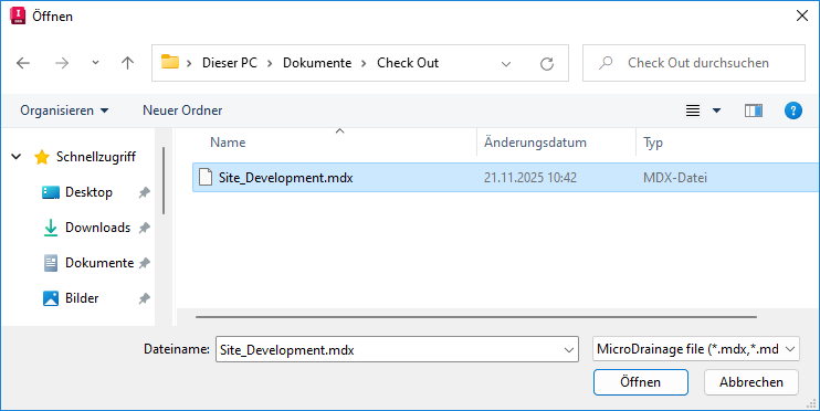 MicroDrainage-Dateien enthalten einige Standort- und Rohrinformationen, die derzeit nicht unterstützt werden. Eine Liste der unterstützten und nicht unterstützten Elemente finden Sie unter MDX-Dateiformat.