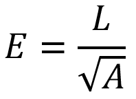wobei L die Länge des längsten hydraulischen Pfads im Einzugsgebiet und A die Fläche in m² ist. Wenn der Formfaktor E stark von 2 abweicht, muss der Spitzenvolumenstrom Qp um den folgenden Formkorrekturfaktor korrigiert werden: