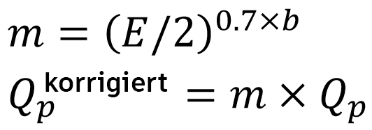 Bei der obigen Formel wird davon ausgegangen, dass das Einzugsgebiet einen Formfaktor E aufweist, der ungefähr gleich 2 ist.