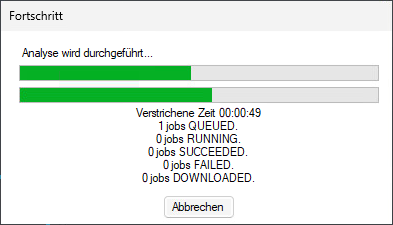 Wenn an einem Punkt während der Cloud-Analyse ein Fehler auftritt, wird eine entsprechende Fehlermeldung angezeigt.