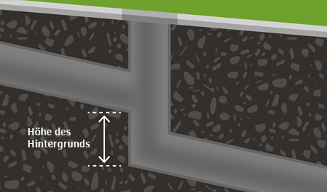 Ein Hintergrund wird von der gewünschten Verbindungshöhe der beiden Verbindungen aus gemessen, die durch die Entwurfshöhe und dann durch den Verbindungstyp, d. h. Profile mit 0 % Querneigung, bestimmt wird. Das bedeutet, die Scheitelhöhe wird berücksichtigt, es sei denn, einer der Abschnitte ist ein Kanal. An diesem Punkt würde die Software von gleichen Sohlen ausgehen.