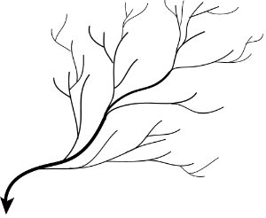 Ein verzweigtes Netz definiert eine Hauptroute und Stränge, die an einem eindeutigen Auslauf enden. Die folgende Abbildung zeigt ein verzweigtes Entwässerungsnetz: