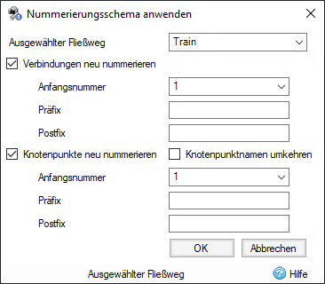 Verbindungen neu nummerieren: Aktivieren Sie dieses Kontrollkästchen, um die Verbindungen im ausgewählten Fließweg neu zu nummerieren.