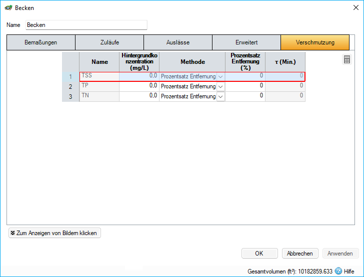 PercentageRemoval = der angegebene Prozentsatz, um den die Konzentration im Abfluss reduziert wird