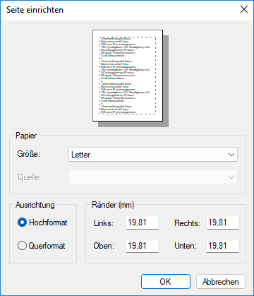 Über die globalen Seiteneinstellungen können Sie das Papierformat und die Quelle sowie die Ausrichtung und die Ränder für alle Seiten festlegen. Globale Seiteneinstellungen gelten für die gesamte Druckausgabe. Lokale Seiteneinstellungen überschreiben die globalen Einstellungen. In diesem Fall wird der Bericht mit lokalen Seiteneinstellungen auf die Seite angewendet.