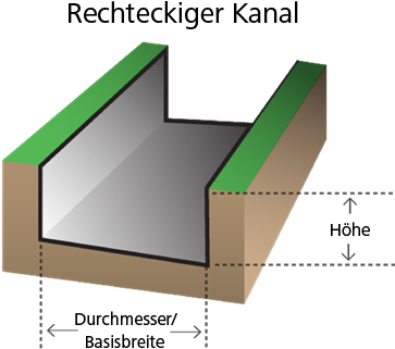 Beim rechteckigen Kanal handelt es sich um einen offenen Kanal mit rechteckigem Querschnitt. Das Volumenstrom-Routing durch eine Kanalverbindung wird unter Analyse von Knotenpunkten und Verbindungen beschrieben.