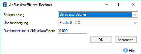 Bei Auswahl von Optionen aus den Dropdown-Listen wird der entsprechende Abflusskoeffizient ausgewählt.