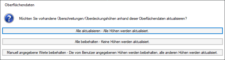 Wird das Formular Oberflächendaten geschlossen, wird ein Meldungsfeld mit den folgenden Optionen angezeigt: