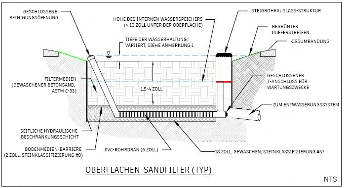 Basis-Versickerungsrate: Definiert die Versickerungsrate durch die Basis des Filterbereichs. Dies sollte anhand eines Leistungstests am Standort ermittelt werden.