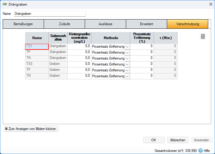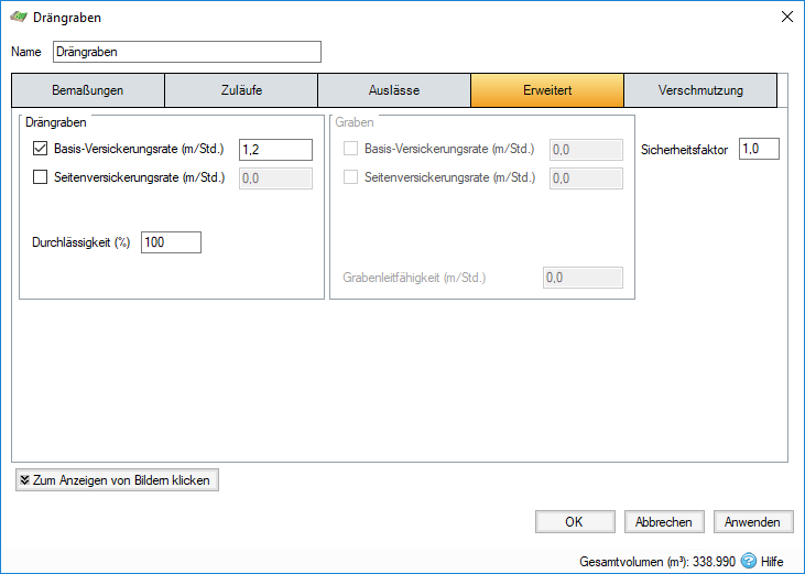 Filterrate: Definiert die Filterrate vom Drängraben in den Graben, falls verwendet.
