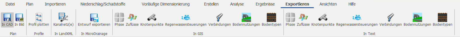 Wenn ein Beschriftungslayer für Zuflüsse, Knotenpunkte, Regenwassersteuerungen oder Verbindungen exportiert wird, werden alle sichtbaren Anmerkungen ebenfalls mit der Beschriftung exportiert. In einigen früheren Versionen von InfoDrainage waren Attributlayer von XPS_ConnectionAttributes, XPS_StormwaterControlAttributes und XPS_JunctionAttributes vorhanden. Diese Layer enthielten mehrere Textzeilen, die bestimmte Parameter sowie deren Werte und Einheiten (falls zutreffend) für Verbindungen, Regenwassersteuerungen und Knotenpunkte anzeigen.