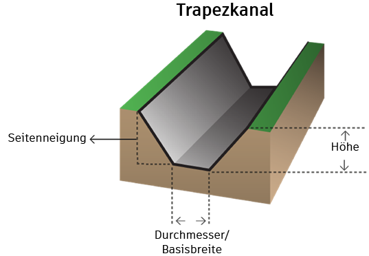 Beim Trapezkanal handelt es sich um einen offenen Kanal mit trapezförmigem Querschnitt, bei dem beide Seiten die gleiche Neigung aufweisen. Das Volumenstrom-Routing durch eine Kanalverbindung wird unter Analyse von Knotenpunkten und Verbindungen beschrieben.